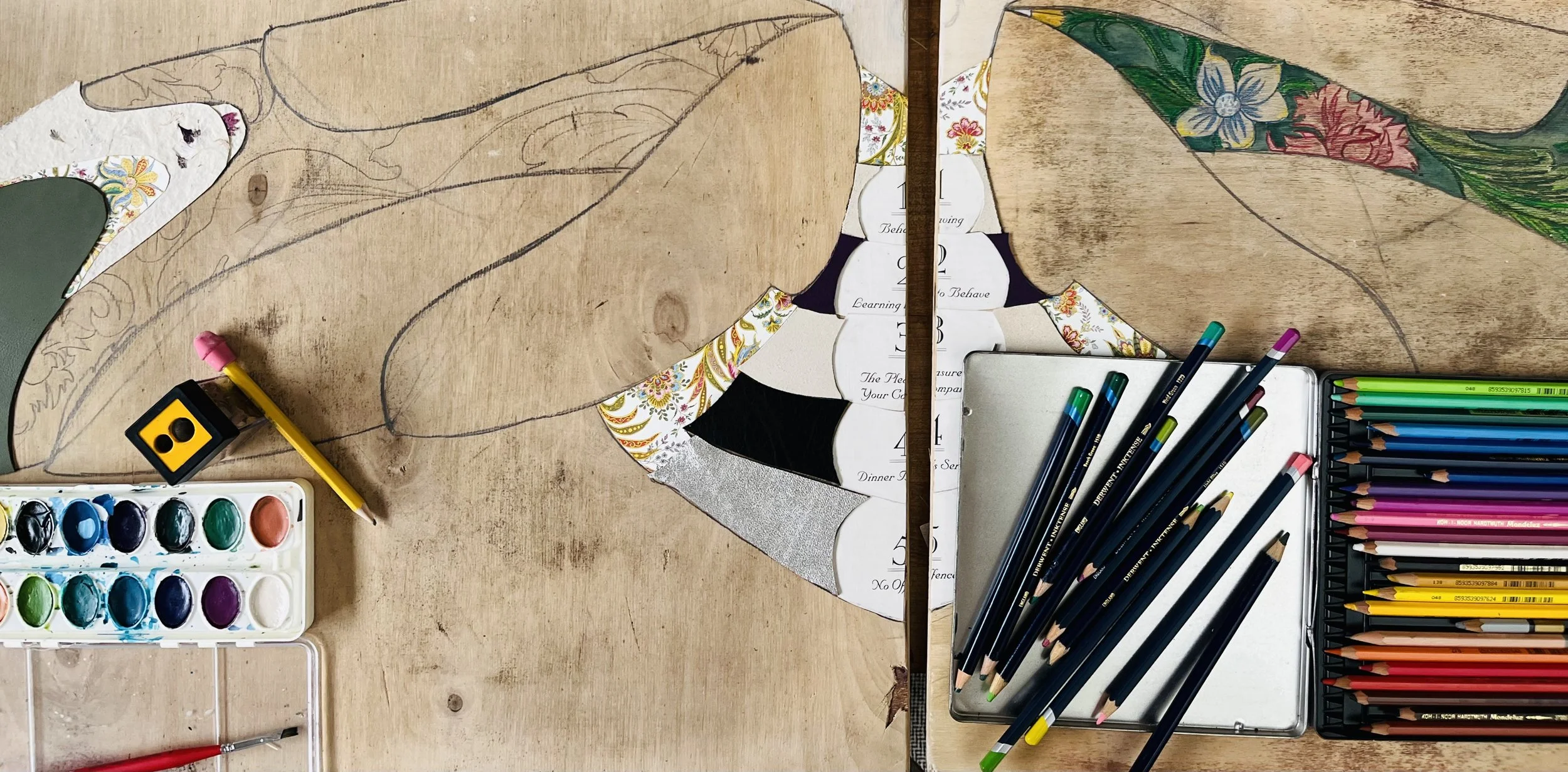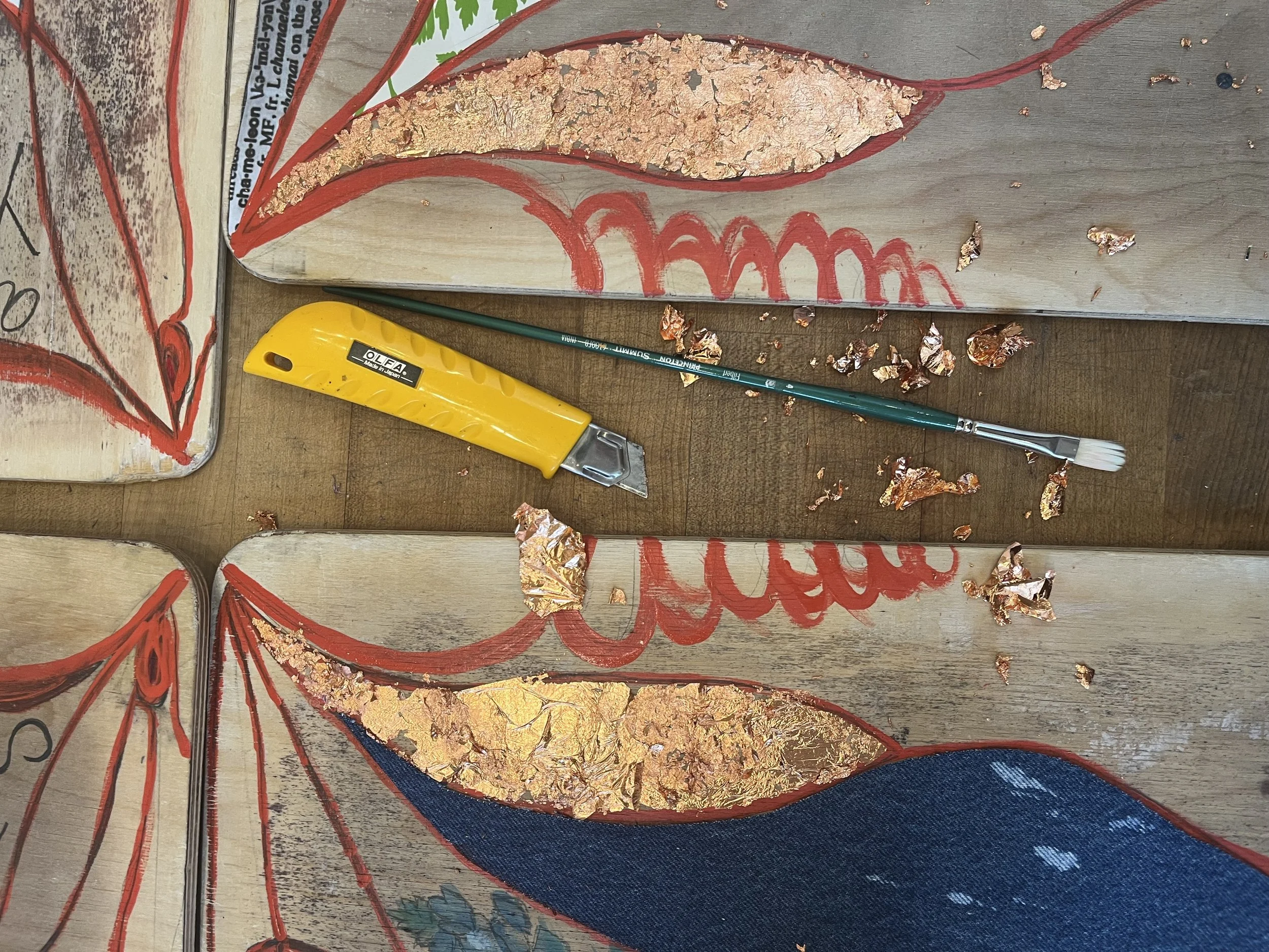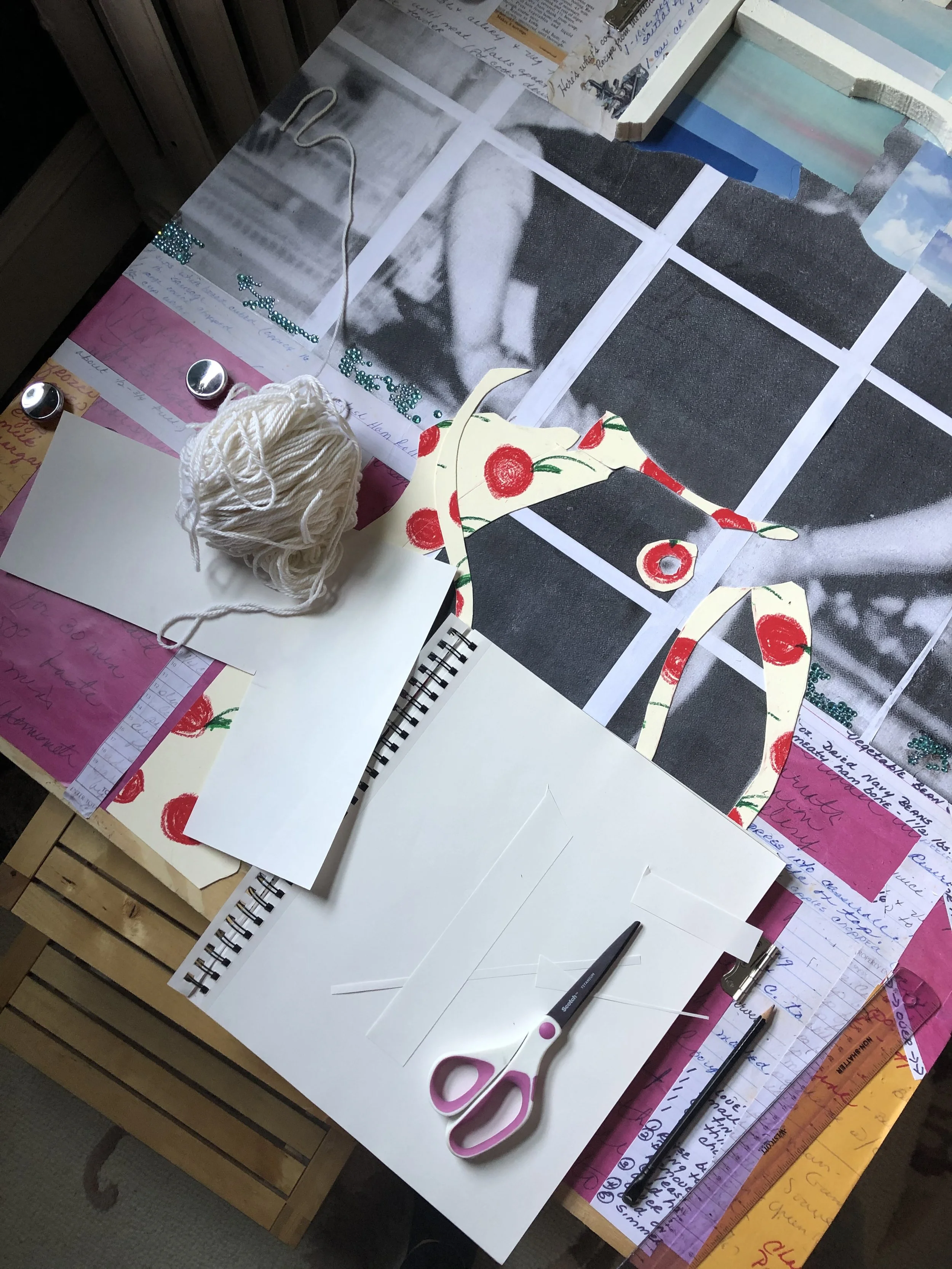 retired wooden bread boards and canvas are the foundation of my work. my goal is to use as many found or repurposed items and objects that i can in my art as i like the idea of limitations. i believe we are most creative in restraint. i love old photos, my own photos, patterns, words and flowers which are a large part of how I decorate my work— sometimes separate, but often mismatched together. if I can’t source it i will paint it or draw it.