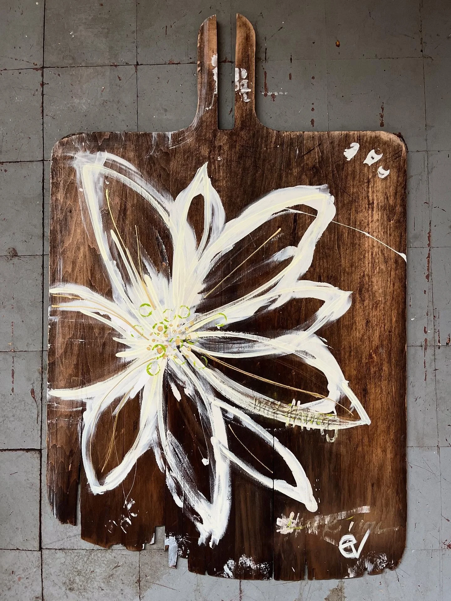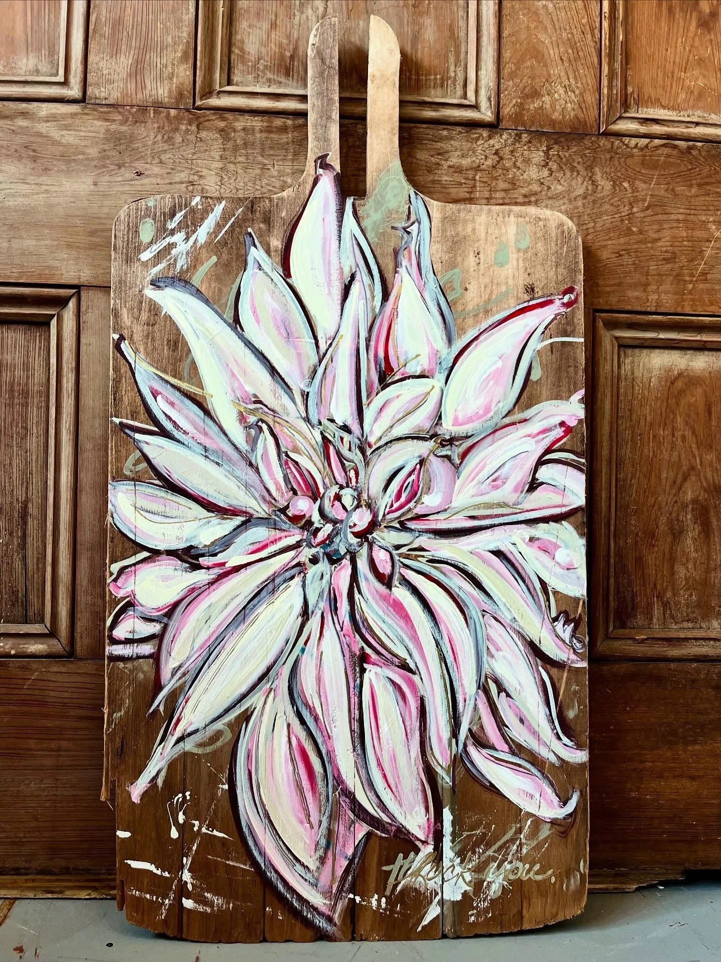this work lets me get messy, paint, paint again, paint over and be wild. these magnolias are beautiful, but should be able to say things that are less polite than we think they should say. it’s my ode to two things i love: magnolias + being dead honest. all on used bread boards.