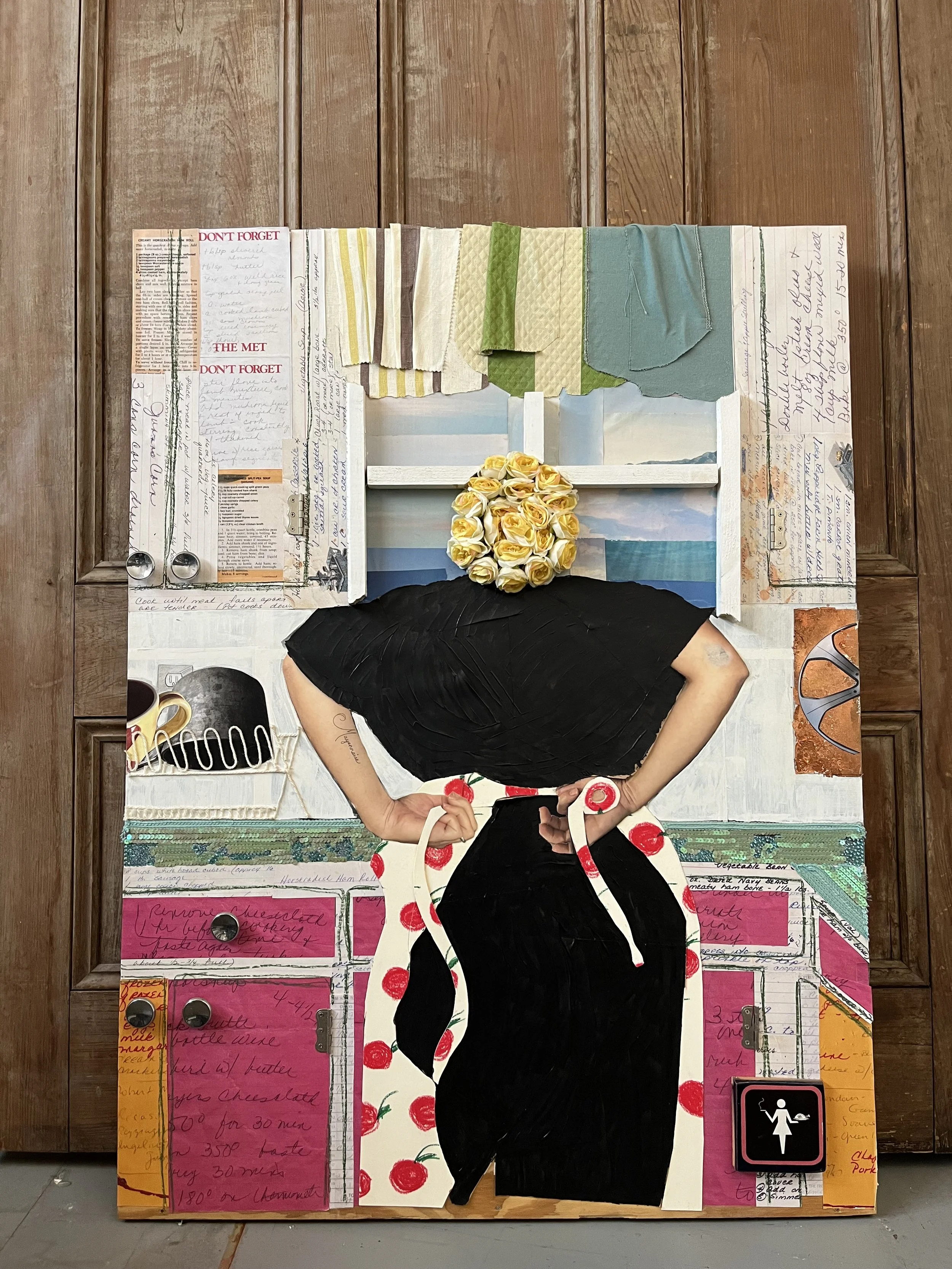 39 1/2” x 48 1/4” mixed media collage, gesso on canvas