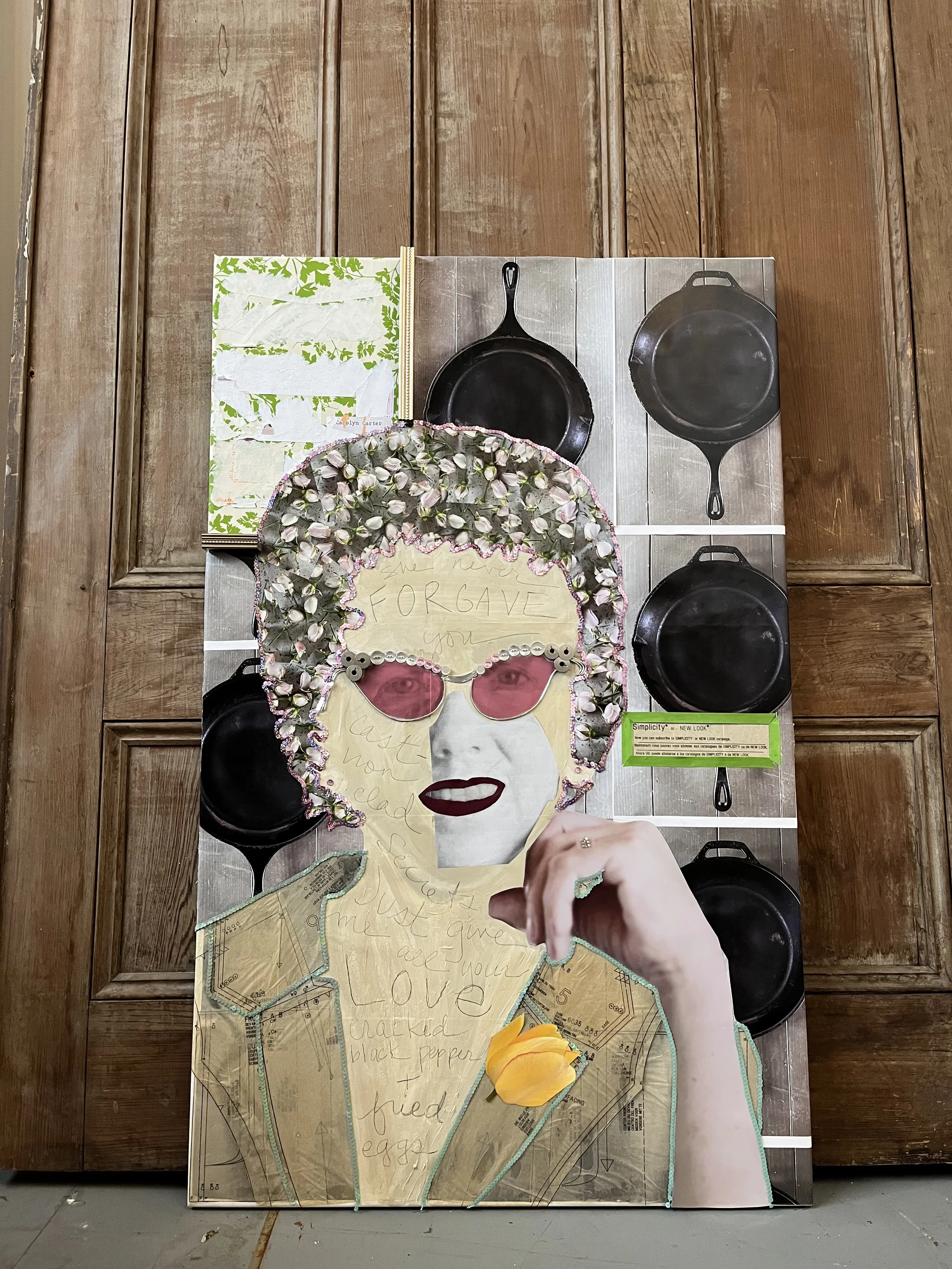 this work lets me dive deep into my grief, and really spend time with people i miss or who are changing. these pieces force me to not just look closely at my family, but literally expand that image and take a closer look at why i am so attached to the photo, the person, or the underlying perception i want to come to recognize and make it obvious with pattern, cut-outs, paint and words.